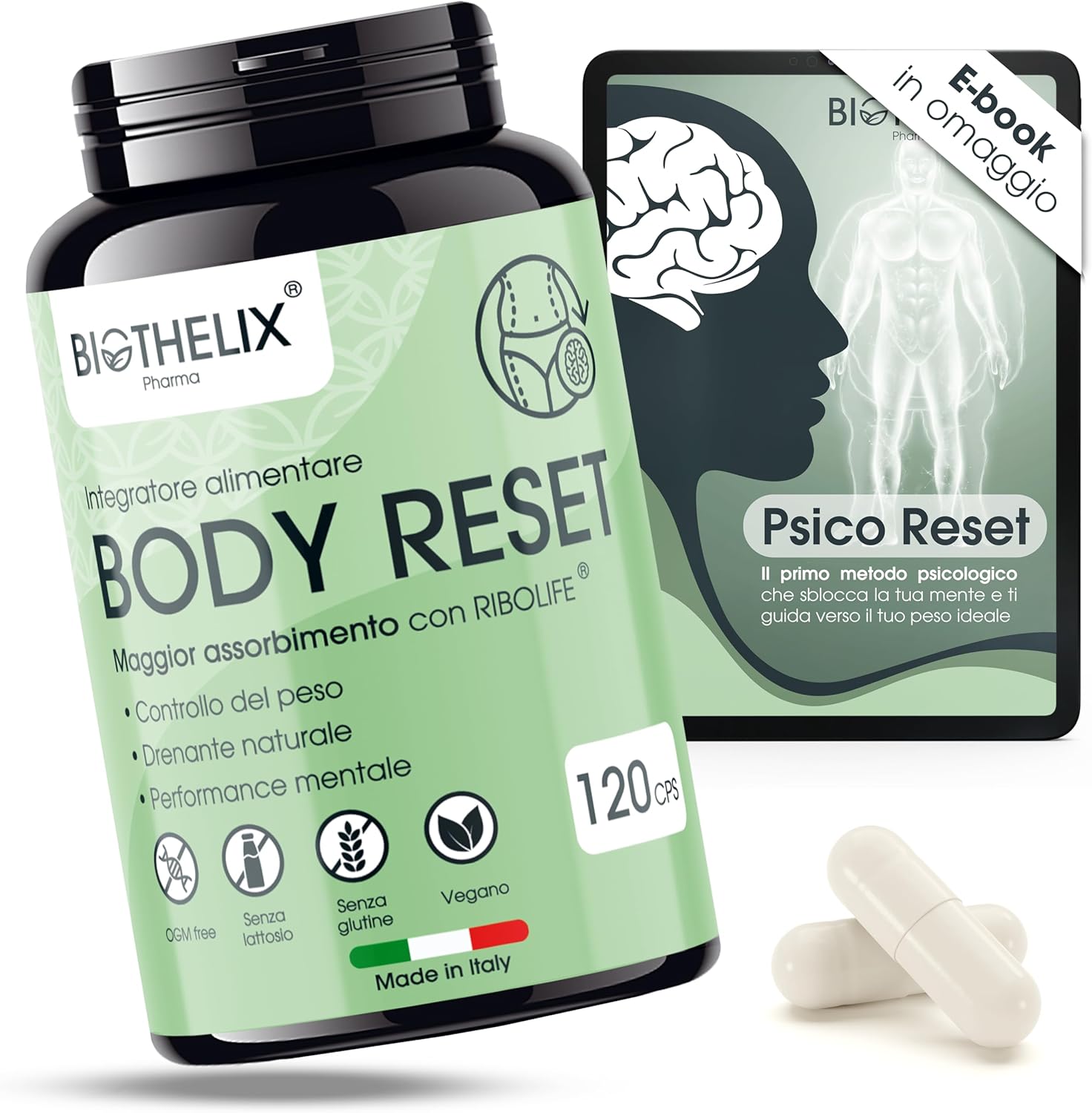 L’eBook Psico Reset è il regalo esclusivo che accompagna Body Reset per aiutarti a sbloccare la mente e mantenere costanza nel tuo percorso. Lo riceverai in omaggio con l’integratore per un programma completo corpo–mente.